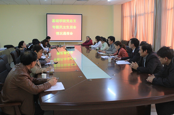 郭子林首先介绍了民主生活会的前期准备情况,通报了基础学院领导班子在专题民主生活会上开展对照检查和相互批评情况和学校第一督导组组长兰迎春对基础学院下一步教育实践活动提出的三点意见。