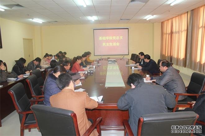 基础学院科以上干部、教研室、实验室主任、党支部书记和部分教师代表参加了会议。