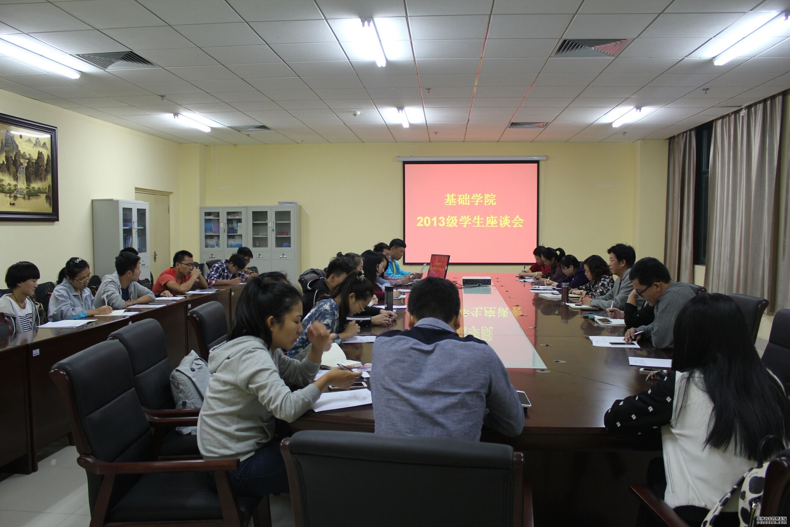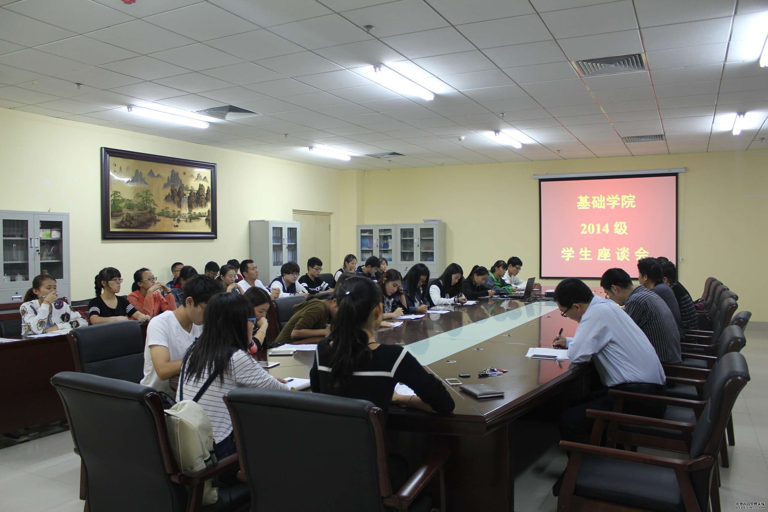 2015年10月14日、22日,基础学院在312会议室分别召开了2013级、2014级学生座谈会。党总支书记郭子林、副院长宋艳红、教学管理科及相关教研室人员参加了会议。