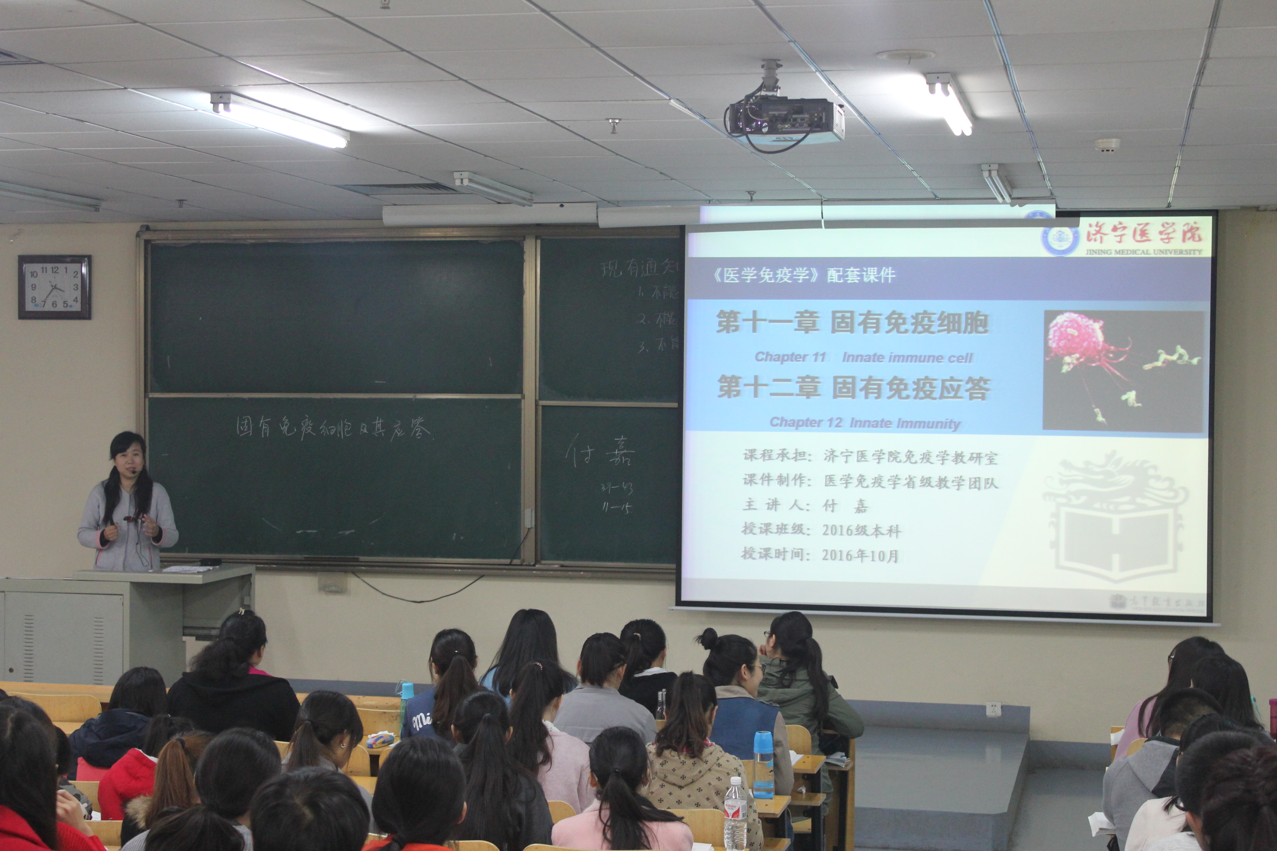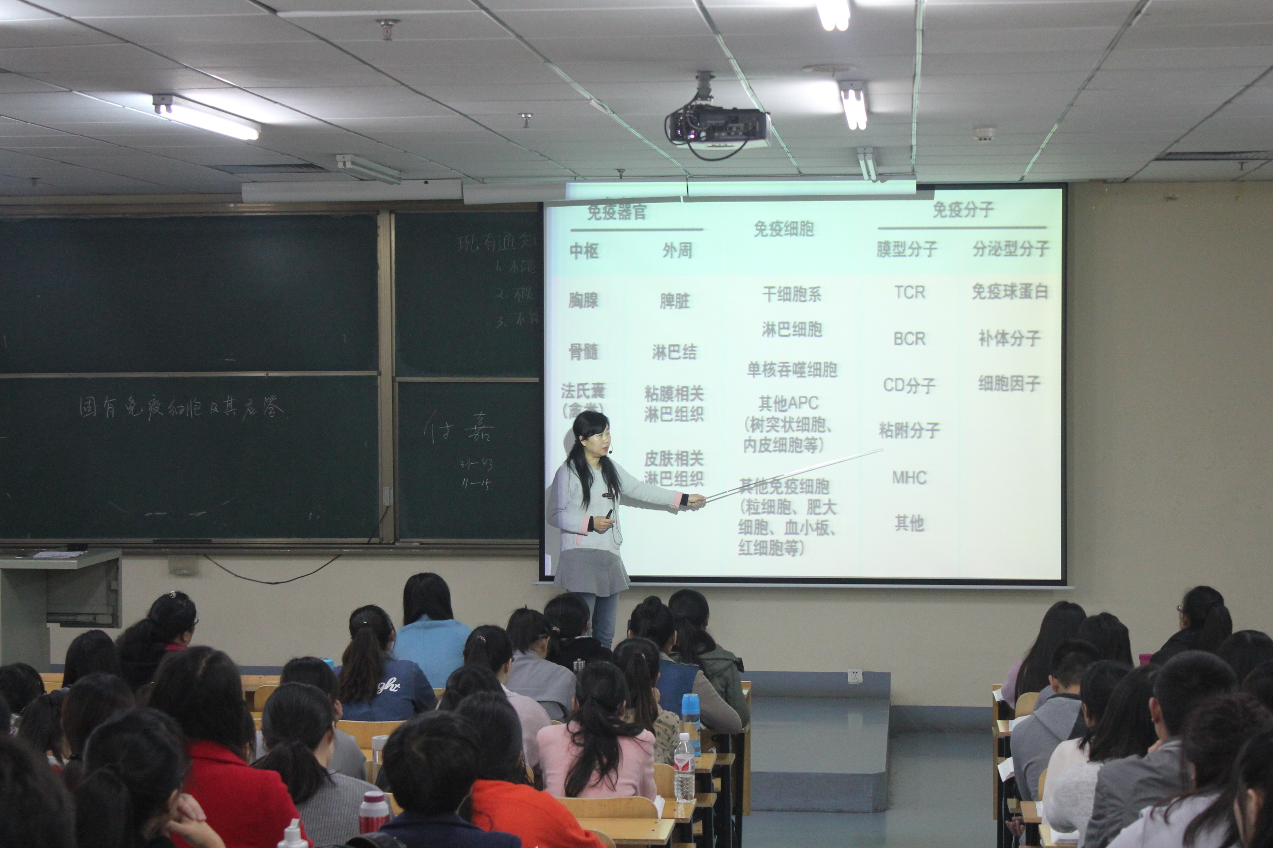 为进一步提高我院教师课堂教学质量,充分展示教授教学风采,促进青年教师改进教学方法,掌握教学技能,提高授课水平, 10月24日,我院特邀请医学免疫学付嘉教授进行了教授示范课,教学管理科、部分中青年教师及200余名学生观摩了此次示范课。