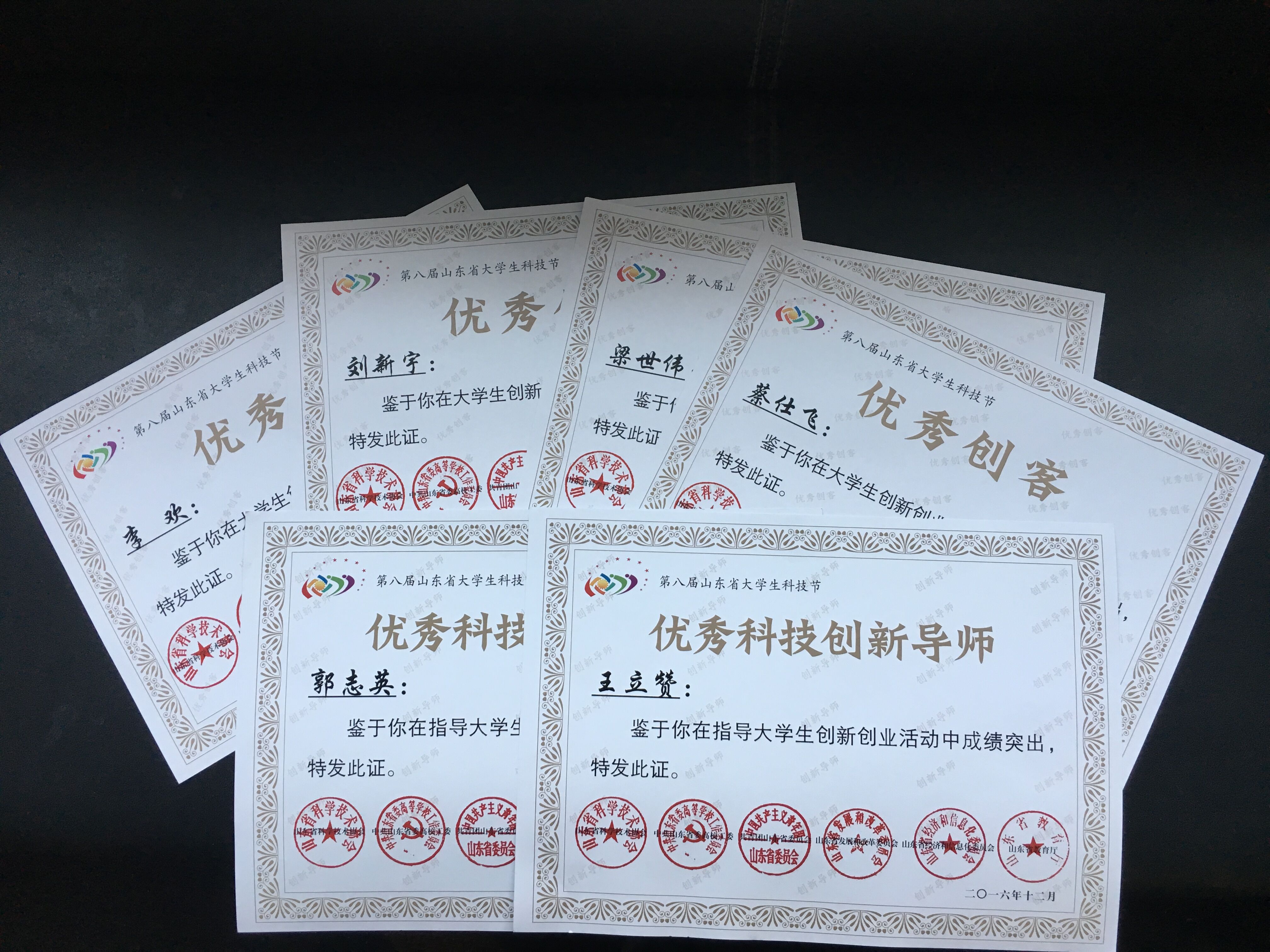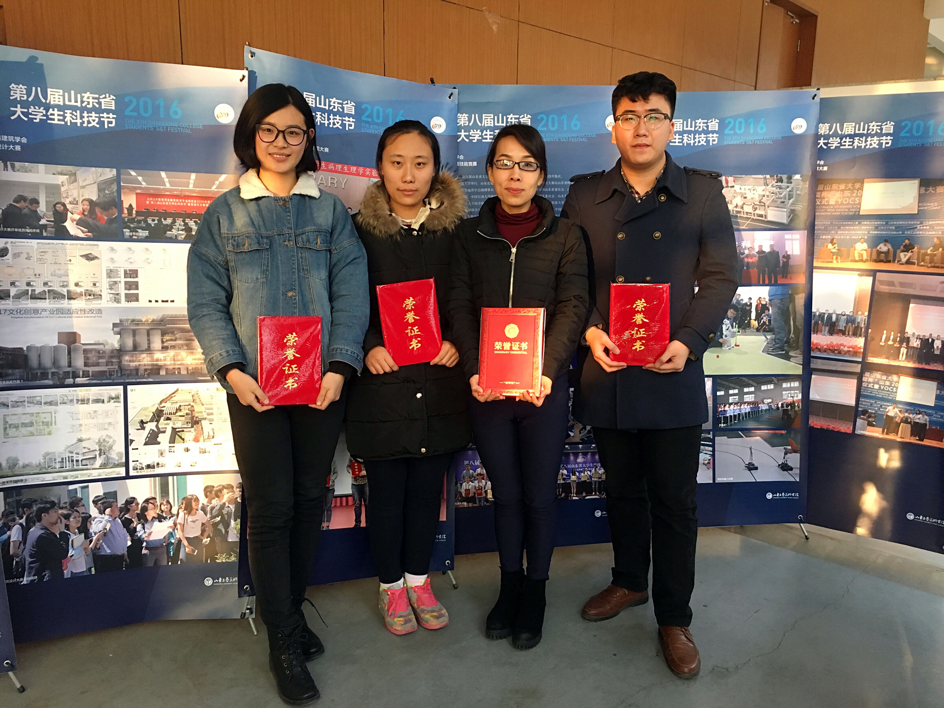 第八届山东省大学生科技节包含39项赛事活动,涵盖全省所有高校,共评选出大学生优秀创客65人,优秀科技创新导师74人。我校体育竞彩推荐平台app王立赞、郭志英两位老师喜获优秀科技创新导师,由其指导的刘新宇、李欢、蔡仕飞、梁世伟等四名学生获得大学生优秀创客奖。