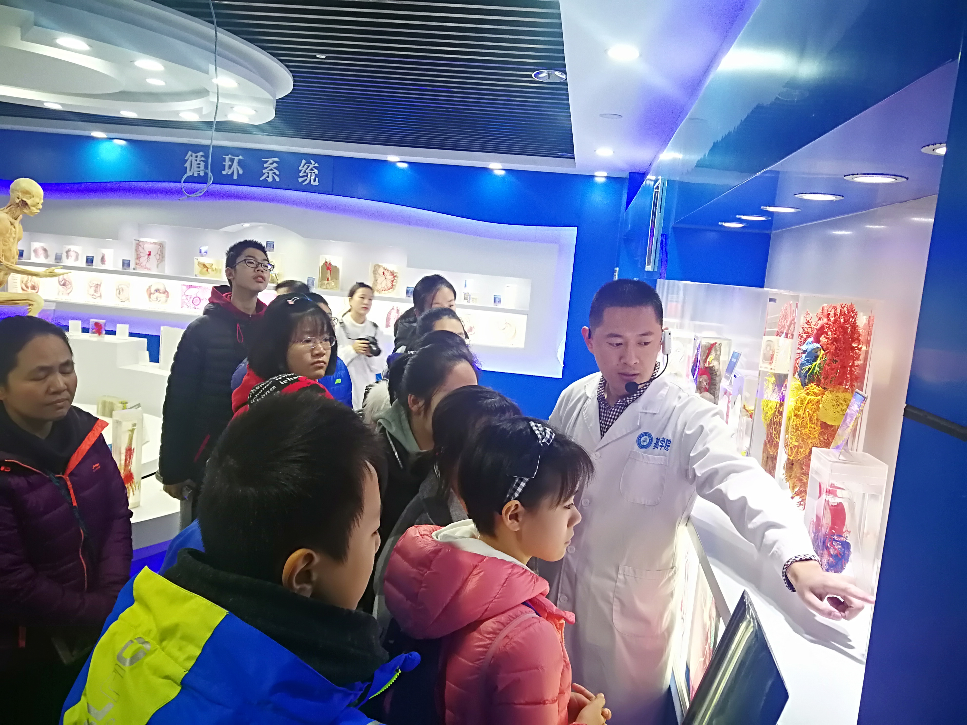 随着史老师的由浅入深的精彩讲解,同学们了解了生命的起源、人类胚胎的发育过程、人体的九大系统,近距离观看了各类疾病的病理标本、断层解剖标本。展馆展示的生命历程,激发起同学们强烈的好奇,老师和志愿者耐心一一解答了他们的问题。