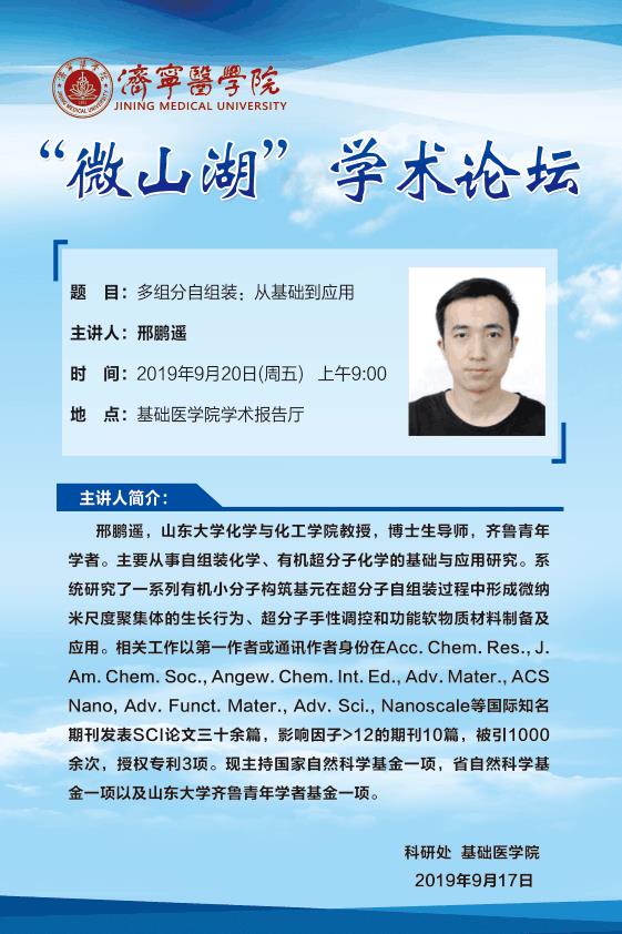 “微山湖”学术论坛-----多组分自组装:从基础到应用的通知