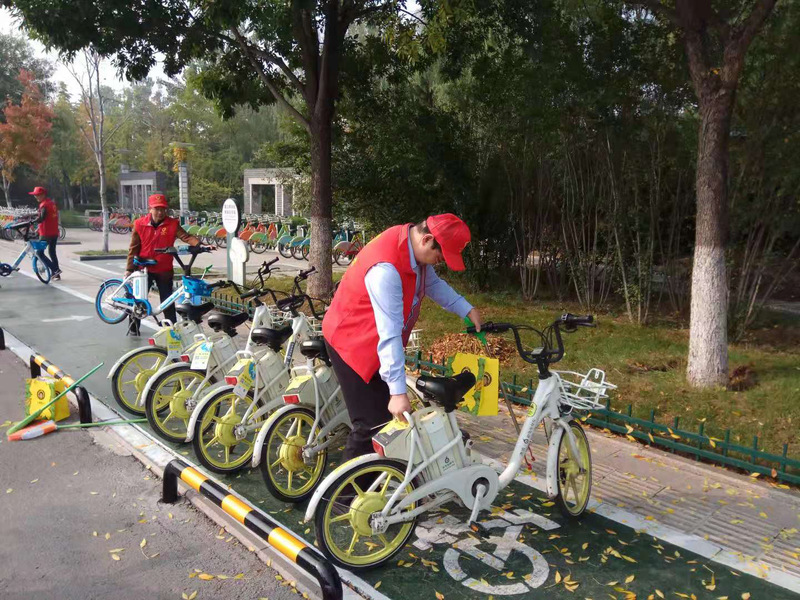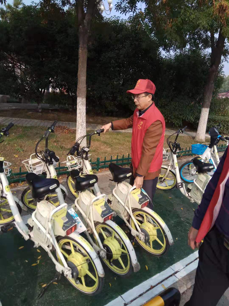 志愿服务的内容是在学校周围的荷花路上捡拾垃圾、摆放凌乱的自行车,维护市容。