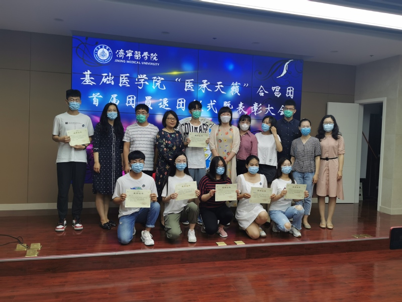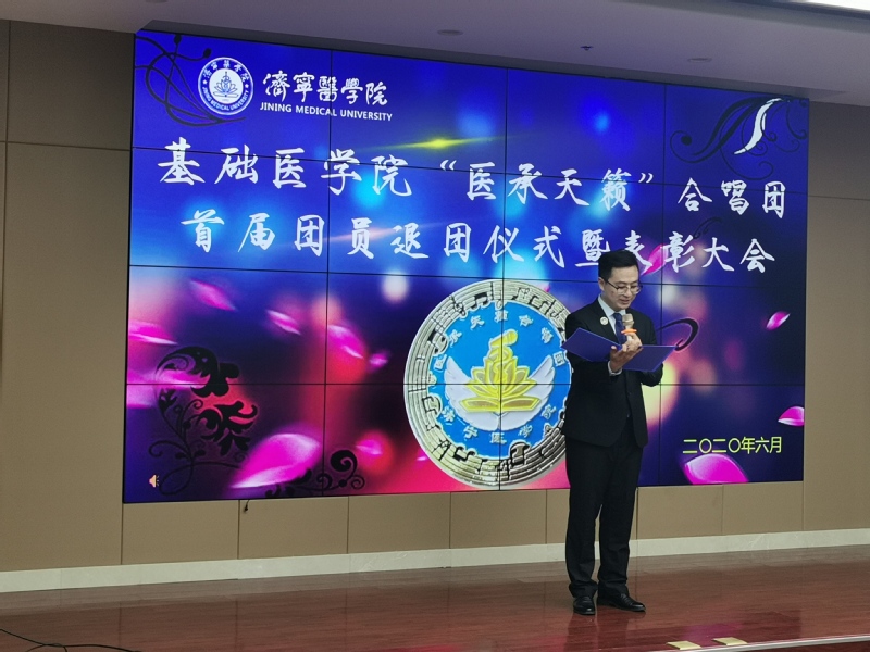2020年6月10日上午,我院“医承天籁”合唱团首届团员退团仪式暨表彰大会在学术报告厅举行,学院党委副书记、副院长陈宁,团总支书记傅莹,合唱团指导老师周彤彤、于安妮,全体辅导员老师和2017级首届团员代表参加活动,全体团员通过腾讯课堂观看线上直播。