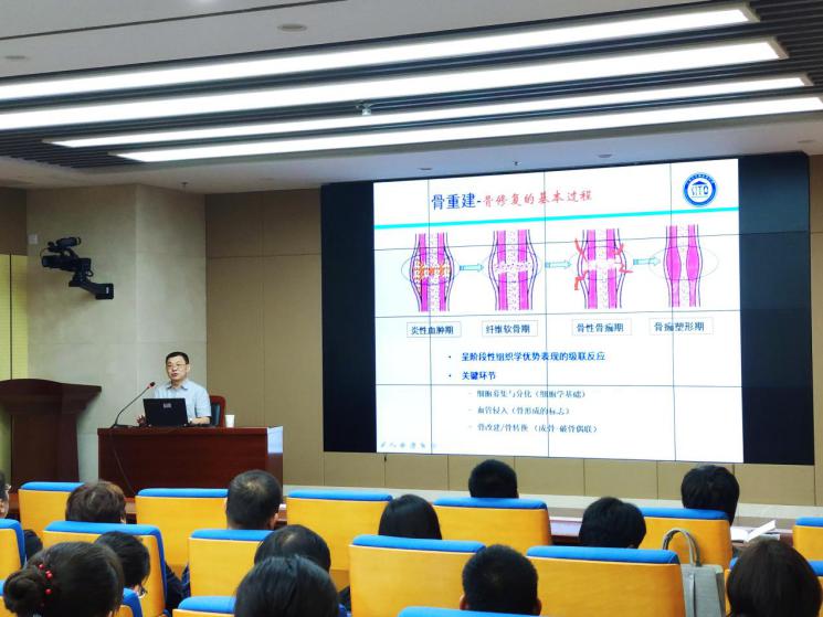 10月2日上午,上海交通大学医学院上海市伤骨科研究所所长邓廉夫教授做客“微山湖”学术论坛,并作题为“骨质疏松药物治疗的理论基础——兼论科学创新是促动应用的原动力”的学术报告。体育竞彩推荐平台app院长王传功主持活动。
