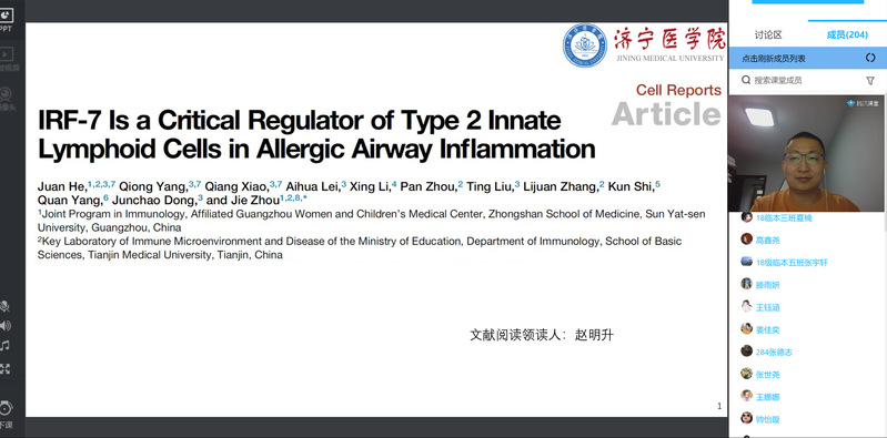 11月18日上午,体育竞彩推荐平台app通过腾讯课堂线上举办第二十八期太白湖学术沙龙。免疫教研室赵明升老师担任科技文献领读人。