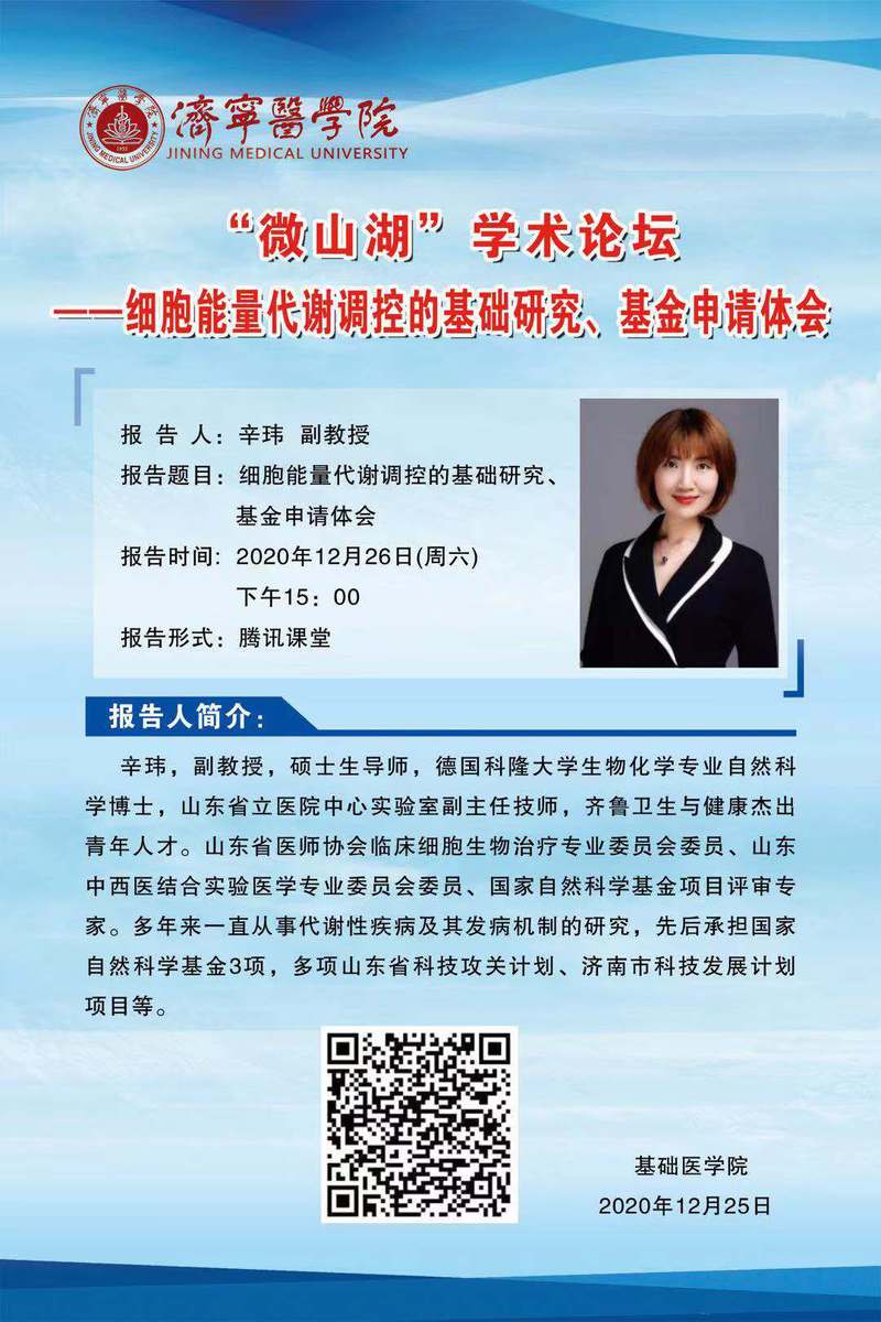 “微山湖”学术论坛--细胞能量代谢调控的基础研究、基金申请体会通知