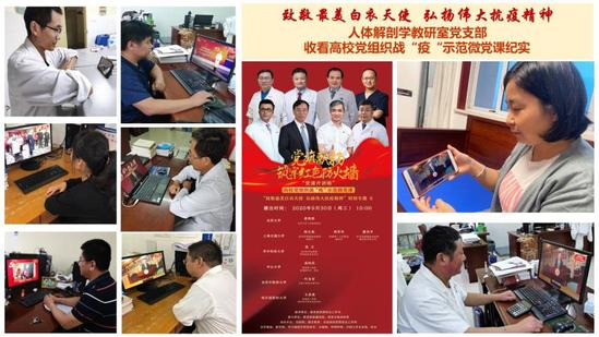 2020年清明节,以绿色、文明的方式在中华英烈网上祭奠革命先烈和抗疫英雄;人体解剖学教研室在线上教学过程中,同步举行“云祭”活动,缅怀无语良师。积极响应“停课不停学”的号召,利用网络载体,组织举办线上室内运动打卡、“疫战到底”线上知识竞赛、宅家花样笔记评选、抗疫短视频征集等各类文体活动,引导广大青年学生勇担使命,积极奉献社会,助力抗疫工作。